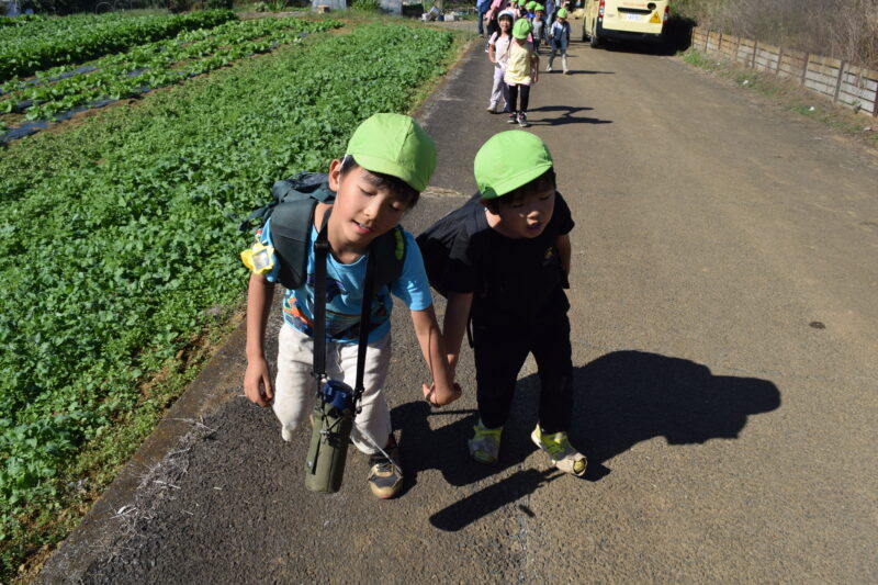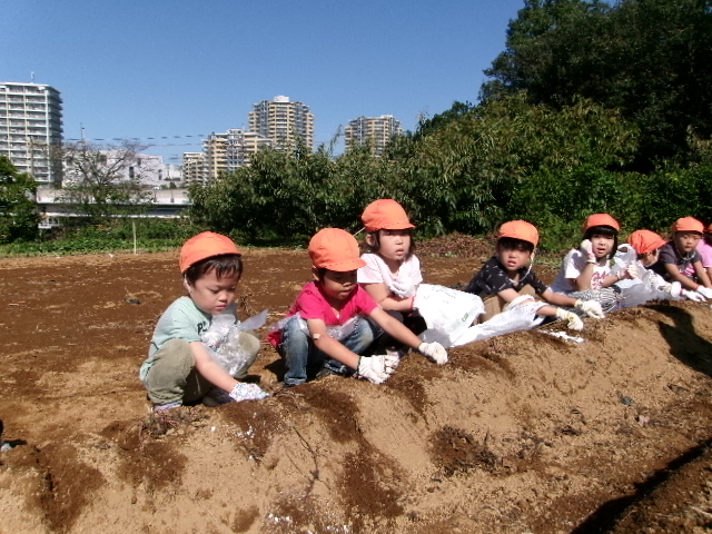 とても良いお天気に恵まれ、お芋掘りへ出かけました。年少は園バスで、年中長は、電車に乗ってお芋掘り畑へ行きます。