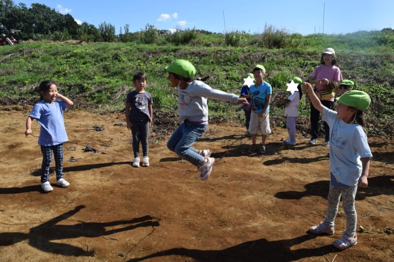 お弁当を食べた後もたくさん遊びます!お芋のつるで縄跳び♪