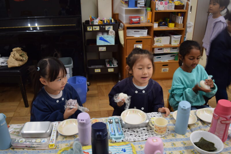 収穫したお米を精米していただき、この日はみんなでおにぎりパーティーです。