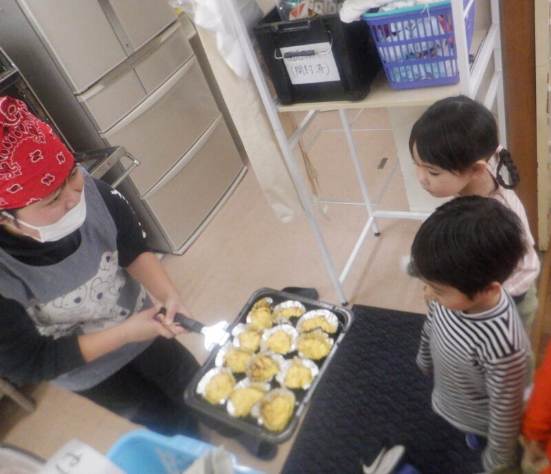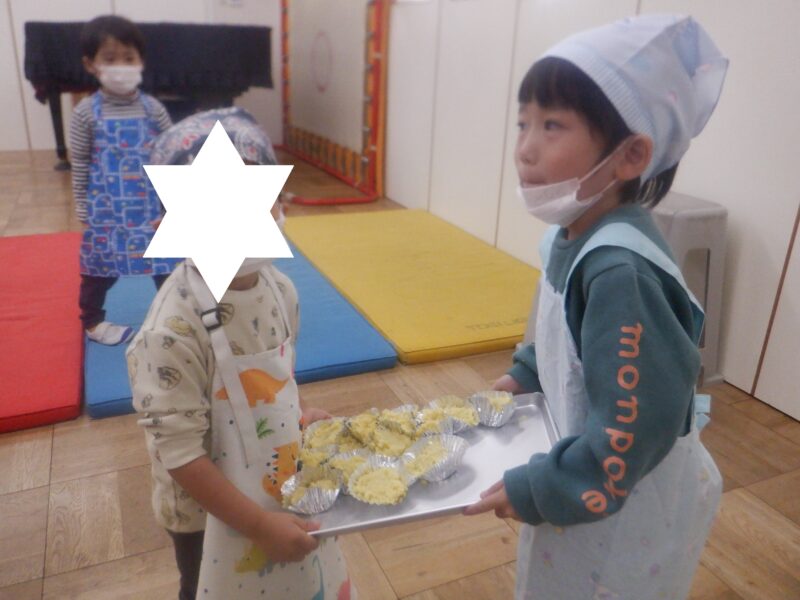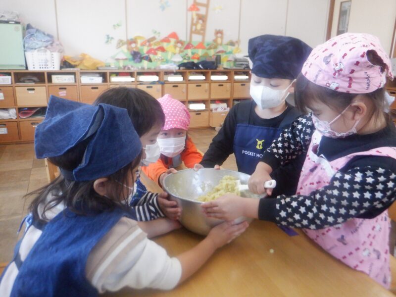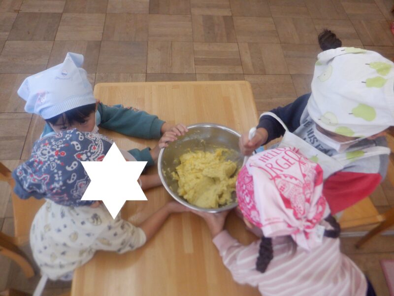お料理が楽しくなったちゅうりっぷ組さんは、この日もさつまいもを使ってお料理をしています。