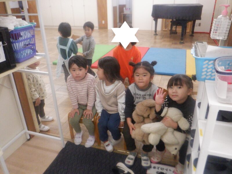 一緒のテーブルのお友だちと協力して作っているようです♪