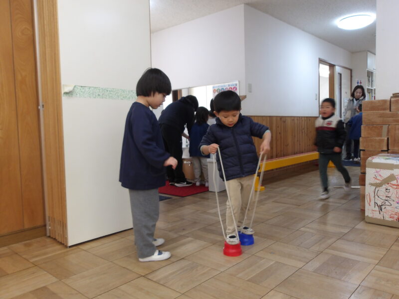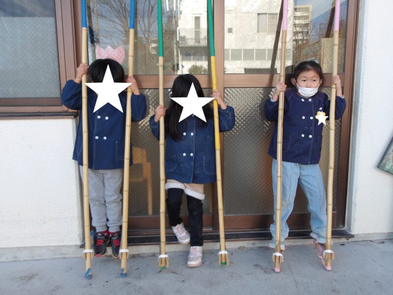 年長さんは「竹馬」に挑戦中!