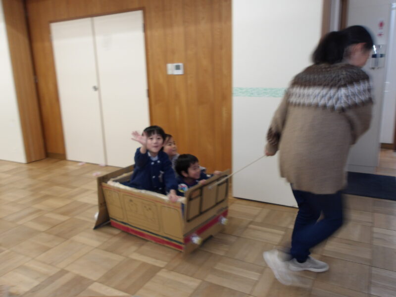 そして京王線の電車遊びも楽しみました。先生たちも全力で遊びました((笑))
