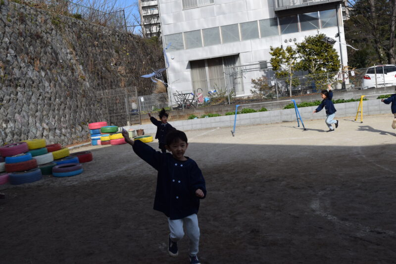 凧あげ(年長 1月中旬) 2026年01月13日 ゆり組さんはお正月遊びの製作で凧を作りました。 風がない日は走って凧をあげています!寒さも飛んでいくね。 « プリンセスごっこ(年中 1月下旬)🐶 日記 🐱 みかんの炙り出し(年中 1月下旬) »