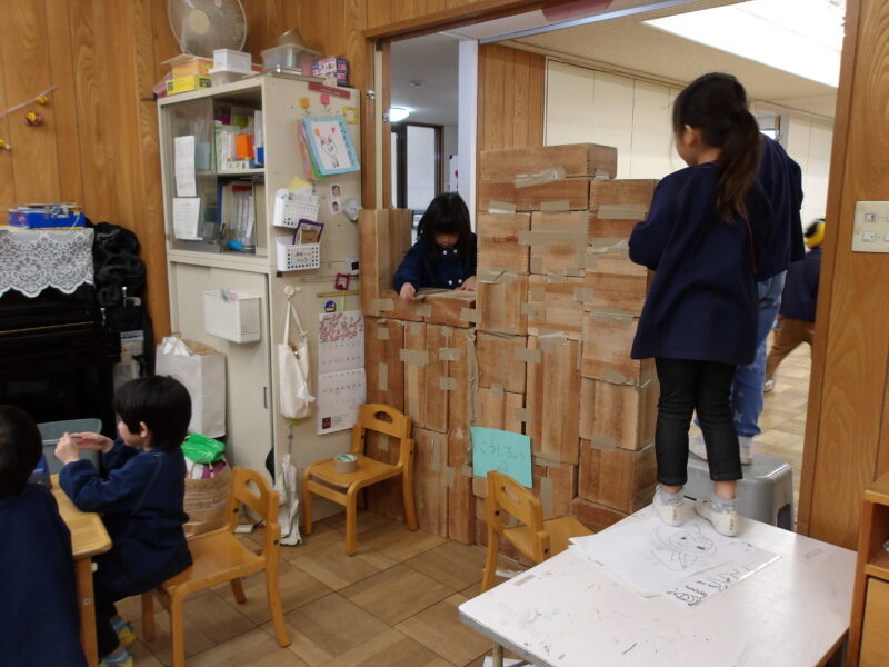 ゆり組さんに見られたらいけないから!と積み木を使って大きな壁を作ってくれる人たちもいました。