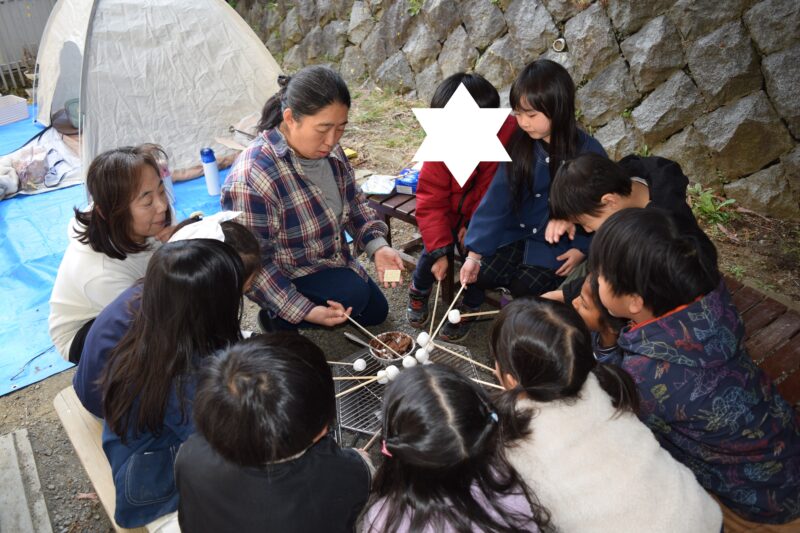 お弁当を食べた後には、みんなでマシュマロ焼き~♪