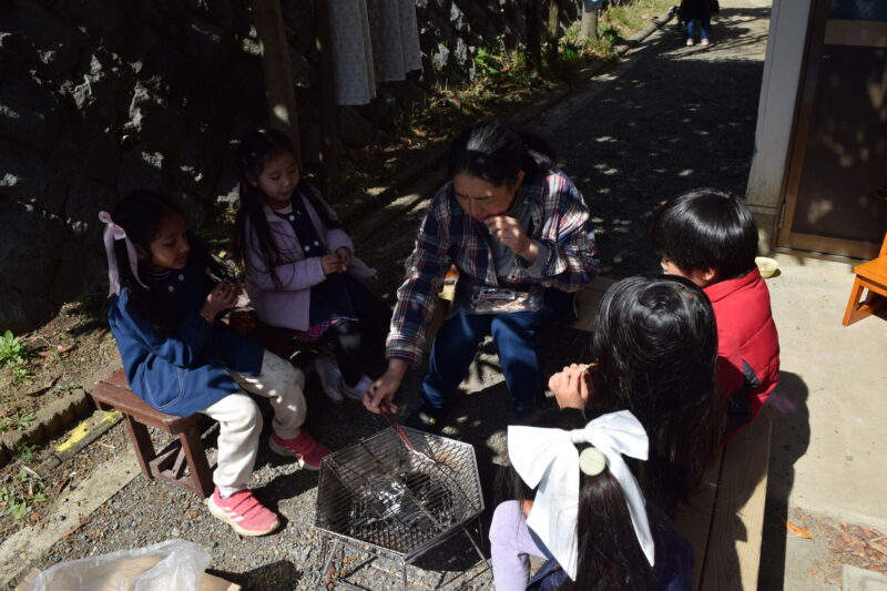 お弁当を食べた後には、みんなでマシュマロ焼き~♪